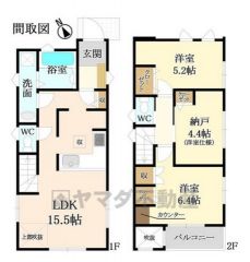 | 間取り詳細 | LDK15.5畳、洋5.2畳(2F)、洋6.4畳 | 都市計画 | 市街化区域 |