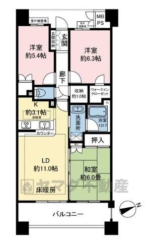| 所在地 | 管理費 | 専有面積 バルコニー面積 |