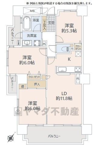 | 間取り詳細 | LD11.8畳、洋6畳、洋6畳、洋5.3畳 | 土地権利 | 所有権 |